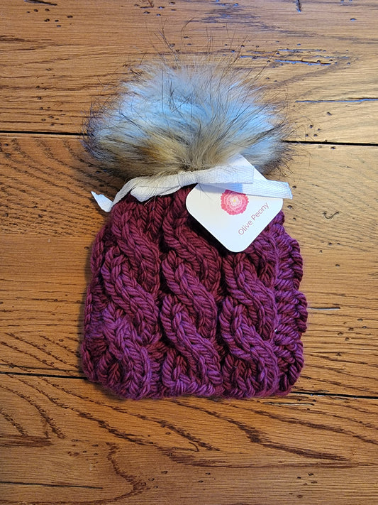Olive Peony Wool Baby Cables Hats