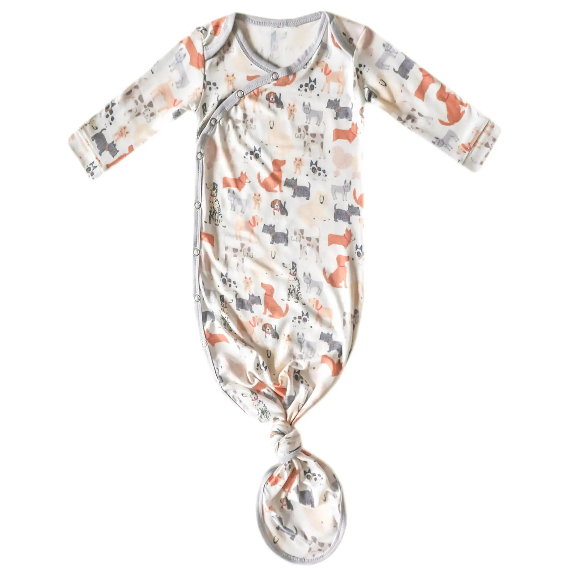 - Made with premium knit fabric, this soft and stretchy gown ties at the bottom for easy diaper changes, and room to grow